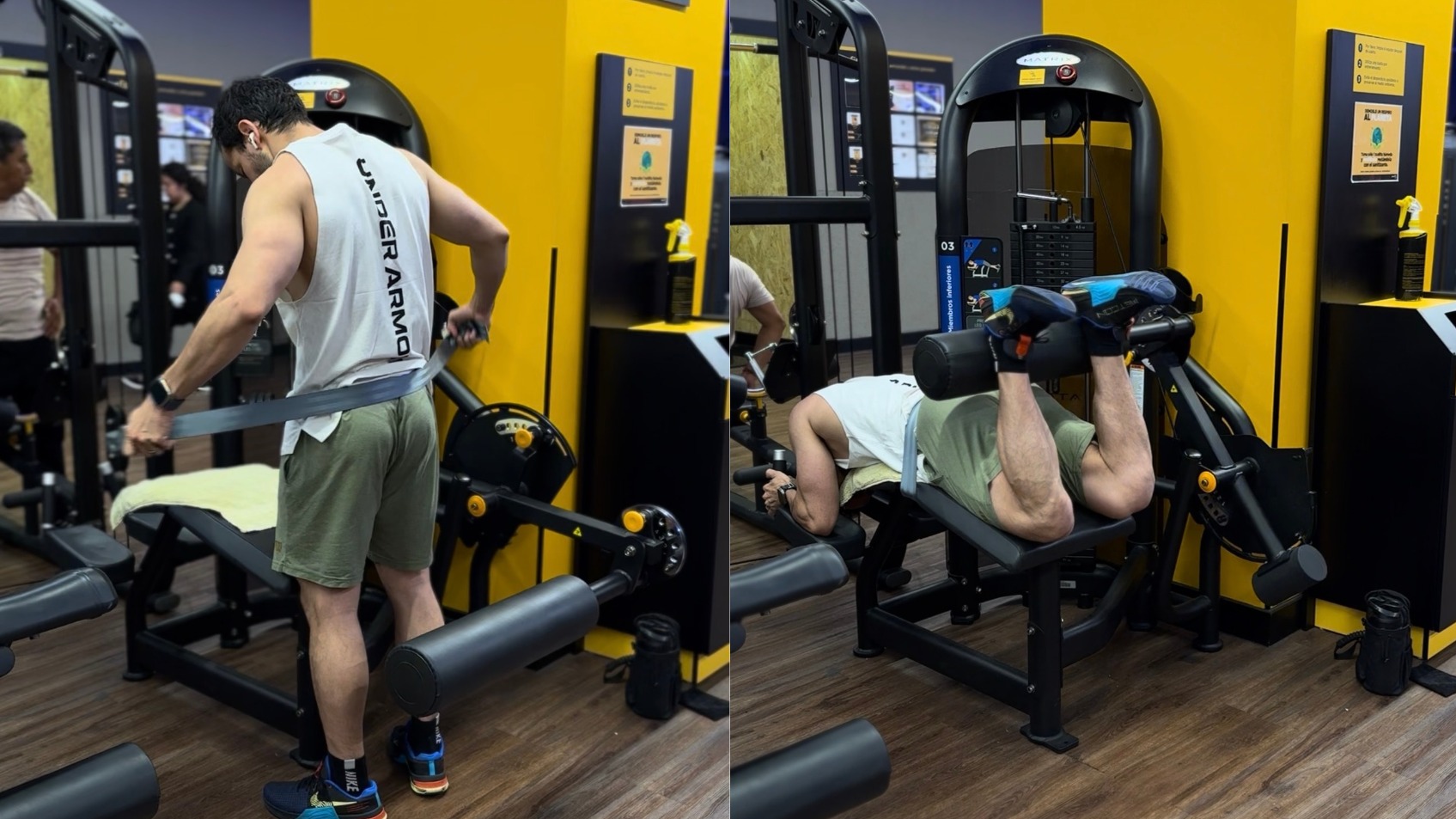 Imagen 1. Un servidor utilizando el cinturón de seguridad de avión en curl para isquiosurales sentado en máquina.